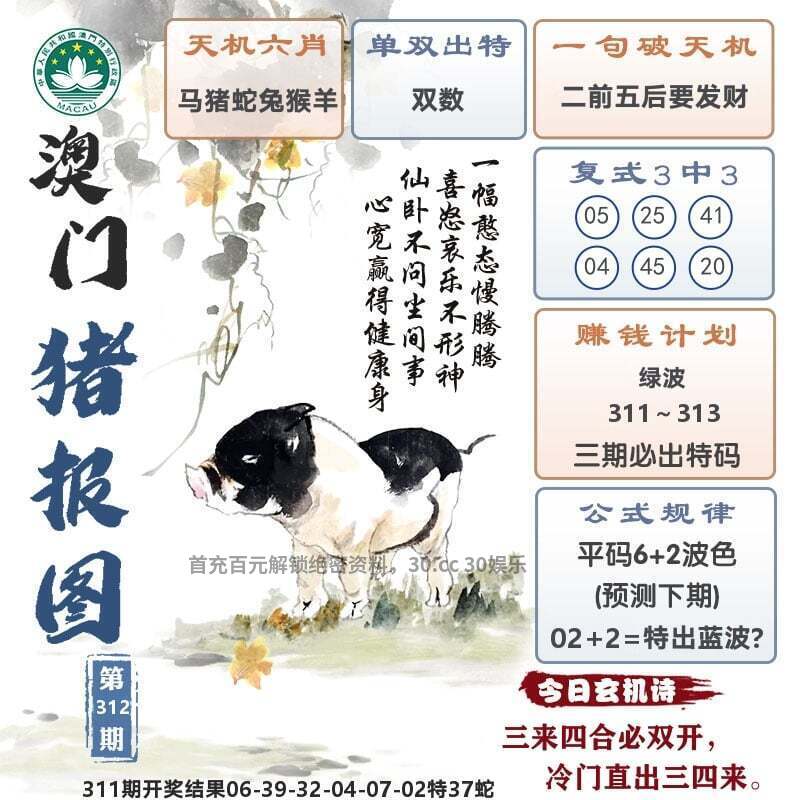 | 第311期 | 黑白三肖=={黑肖+鼠虎狗} | 开:蛇37 |