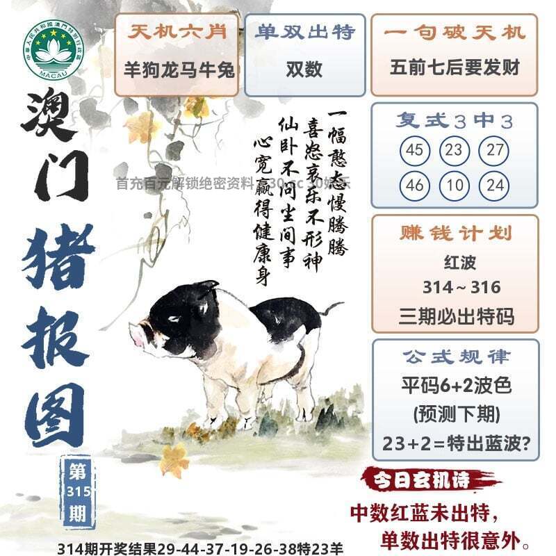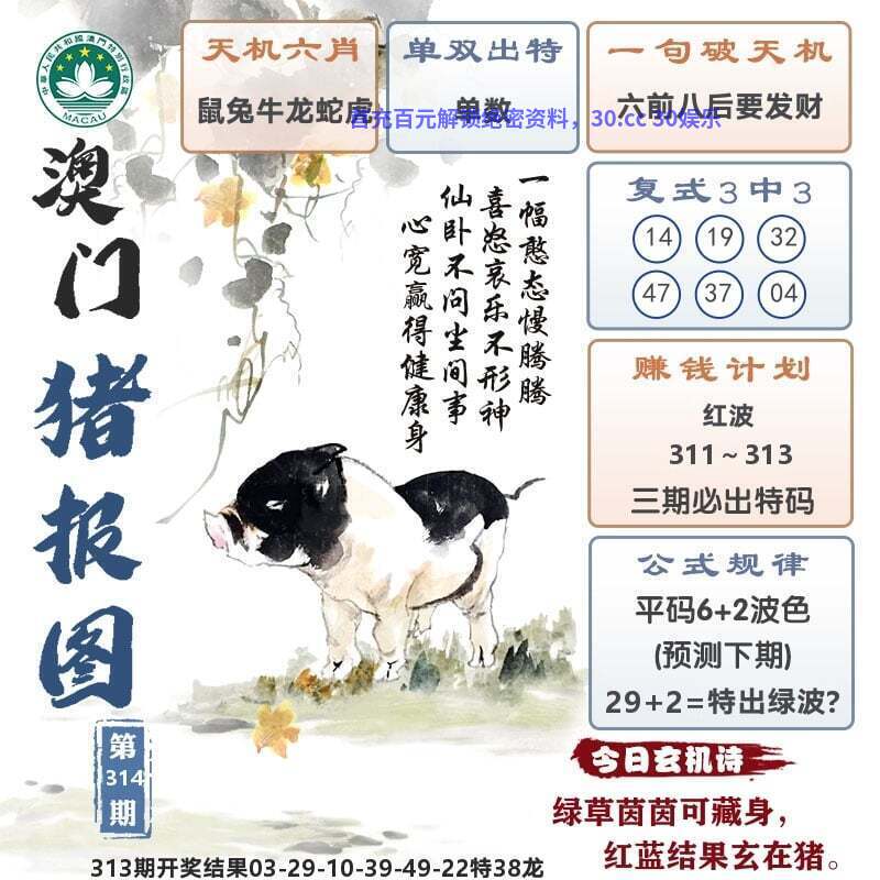 | 314期五肖 | 蛇猴兔羊猪 | 開:羊23 |