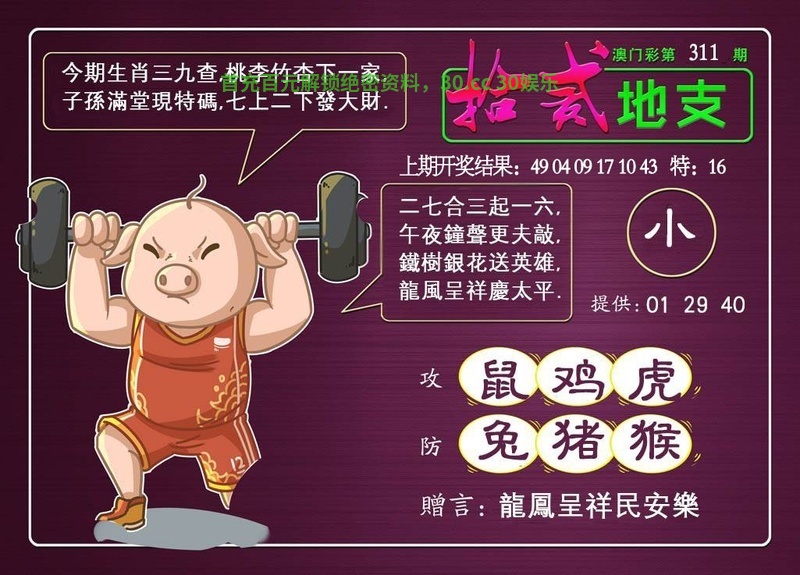 | 第312期 | 精准八肖💦马龙狗虎牛鼠猴兔 | 开:龙14 |